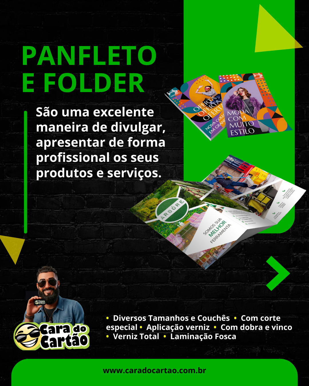 Designer Gráfico desde 2010, soluções em impressos gráficos, artes e vídeos personalizados, atendimento e entrega para todo o Brasil. Acesse o site e peça seu orçamento.